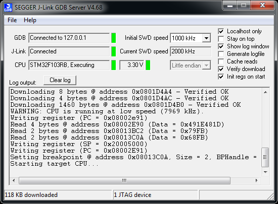 From Eclipse launch the application using the Run/Debug Configurations..., Eclipse should upload the compiled file to the target device which looks like this